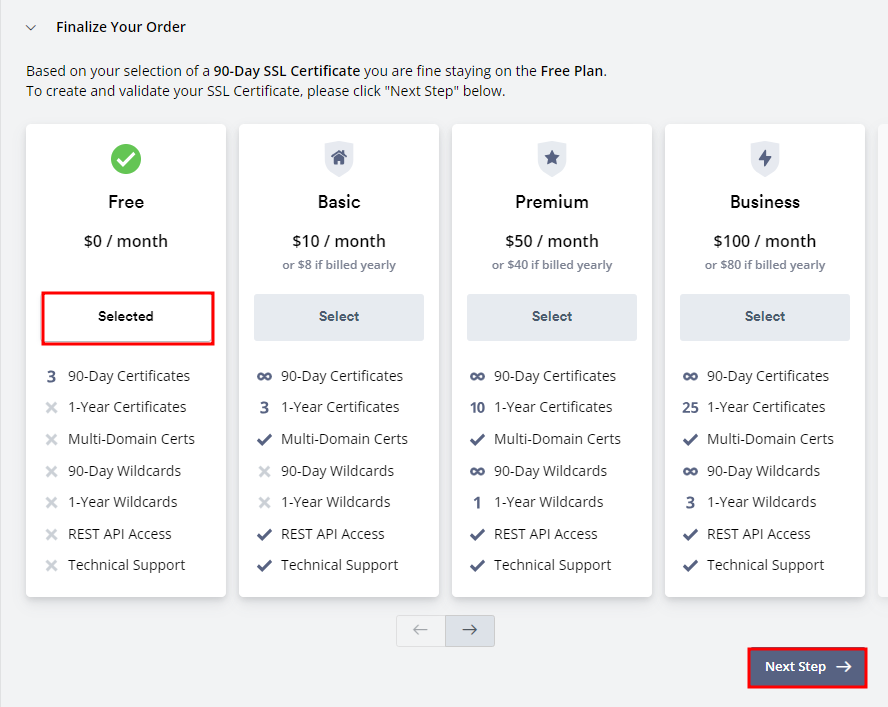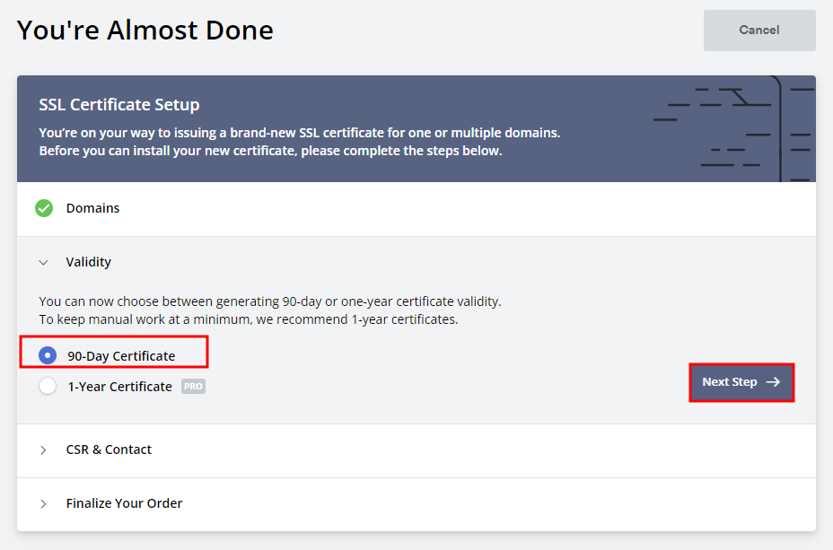 5) [90-Day Certificate] 선택 후 [Next Step] 클릭