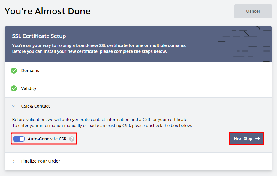 6) [Auto-Generate CSR] 선택 후 [Next Step] 클릭