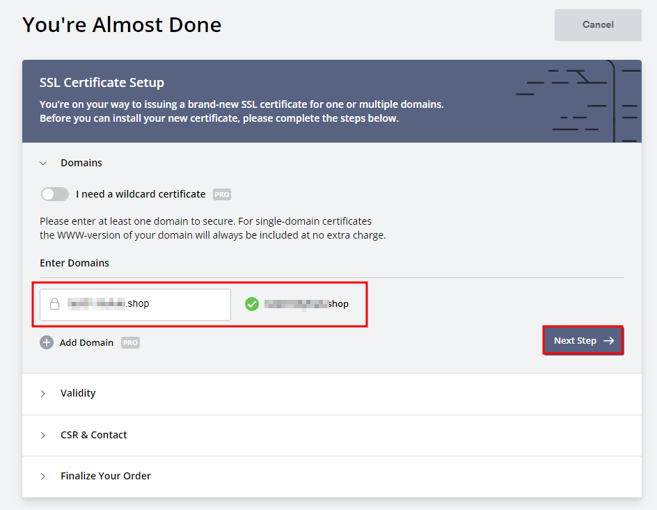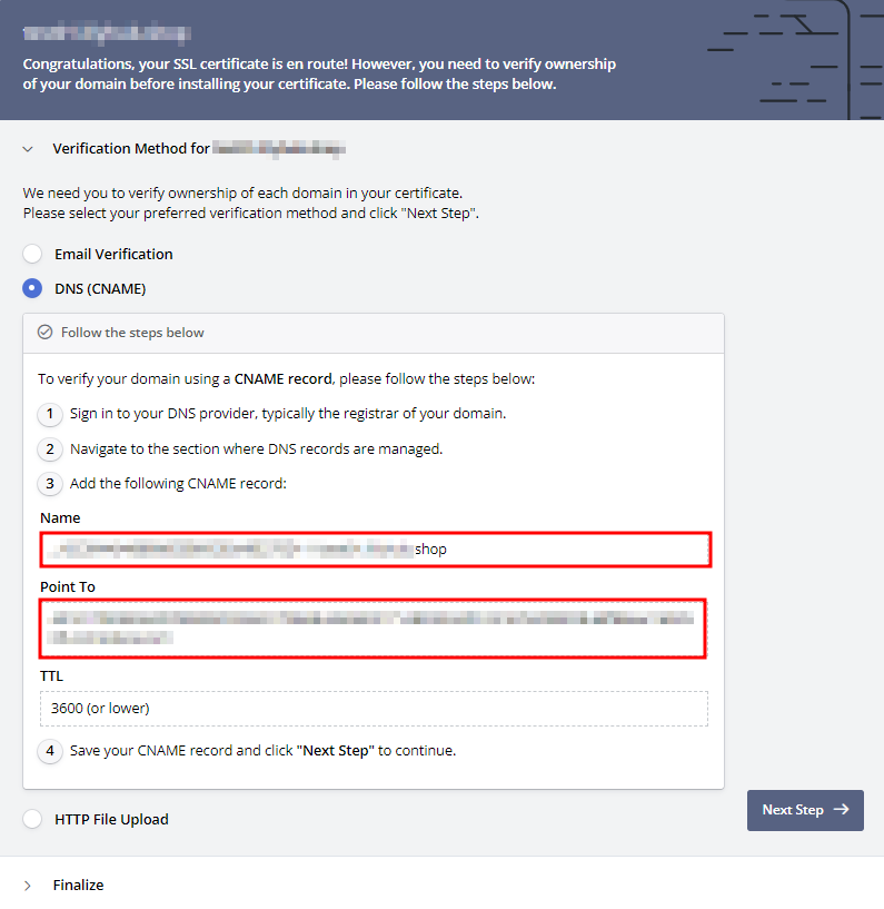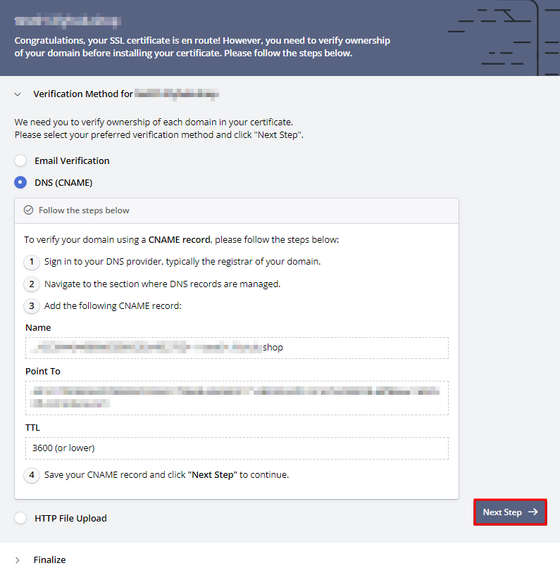 4) 도메인 이름 확인 후 [Next Step] 클릭