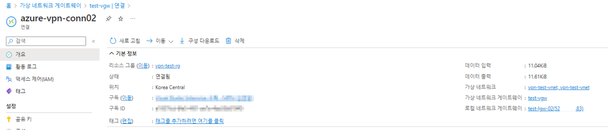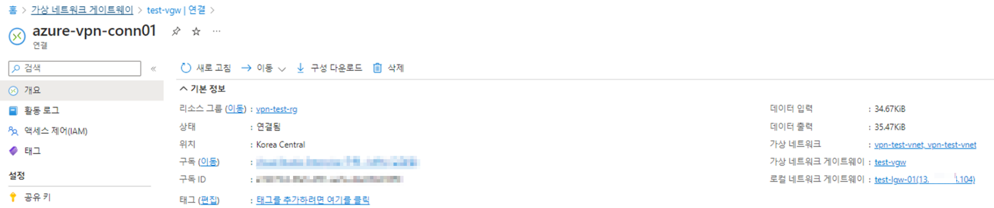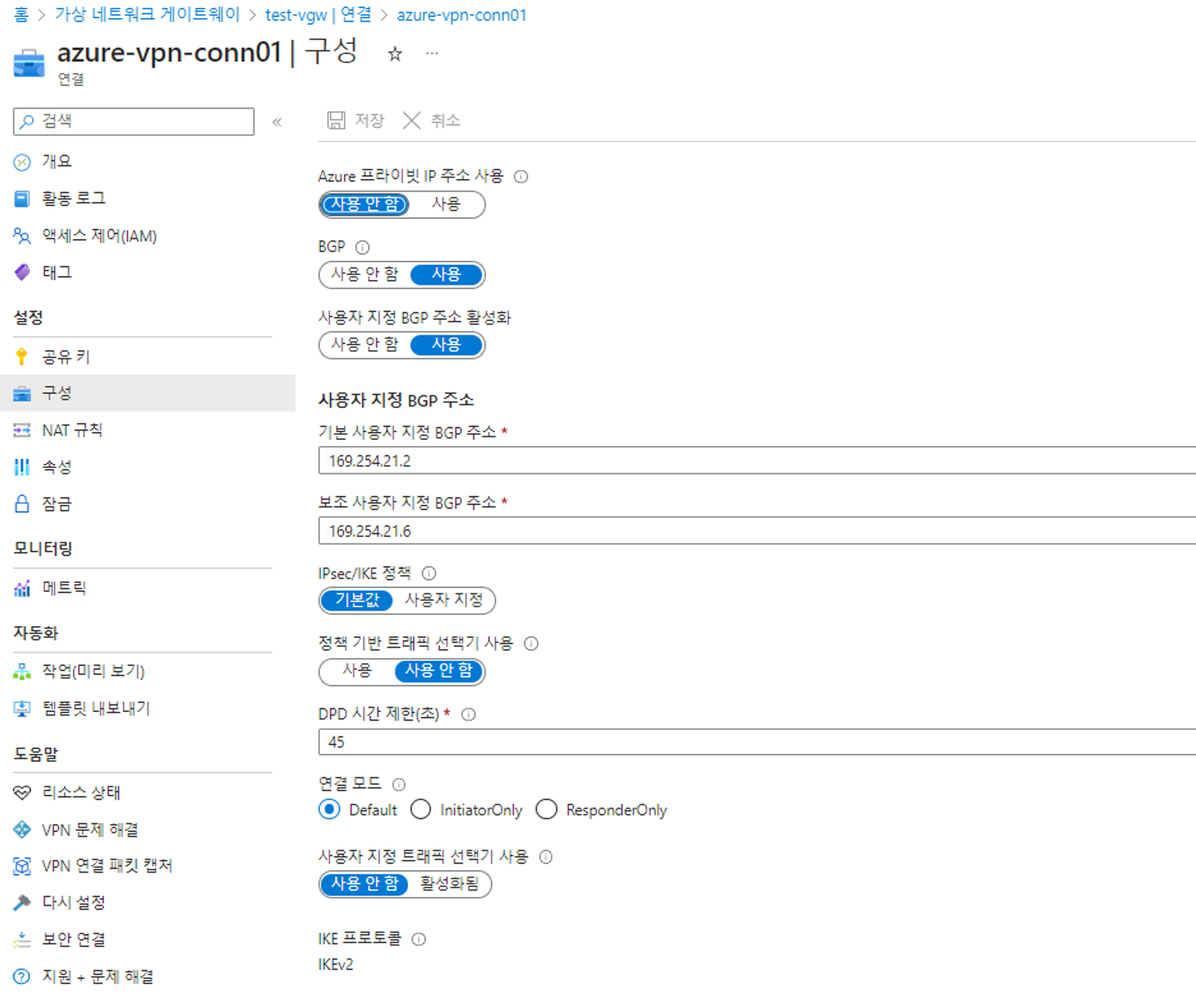 - BGP ASN: 65515 (Azure VPN 게이트웨이의 ASN)