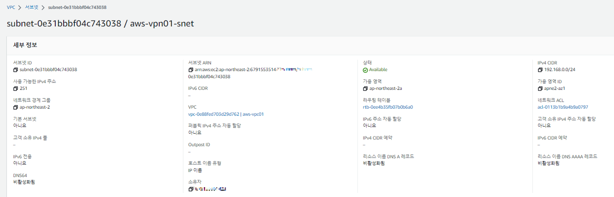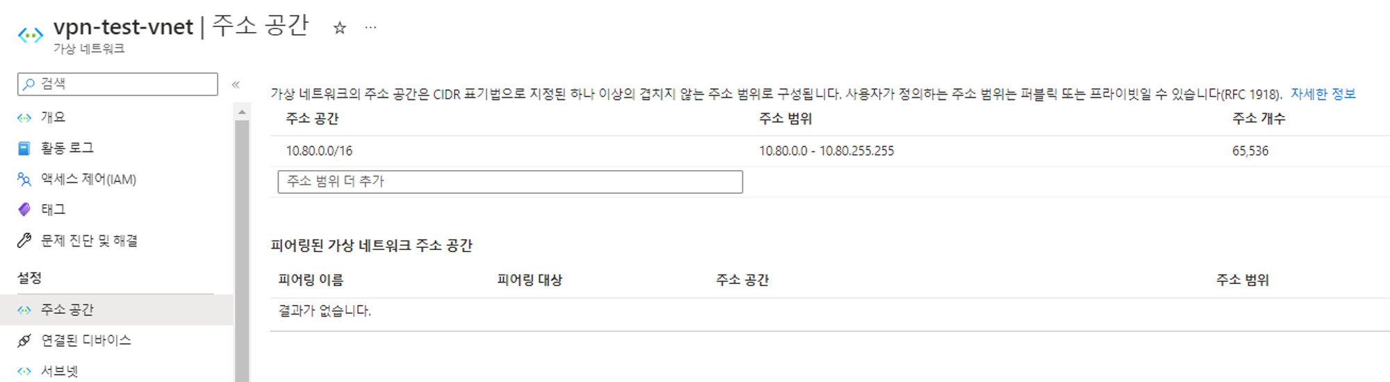 - 가상 네트워크 생성 시 AWS의 VPC 주소 공간과 겹치면 안된다.