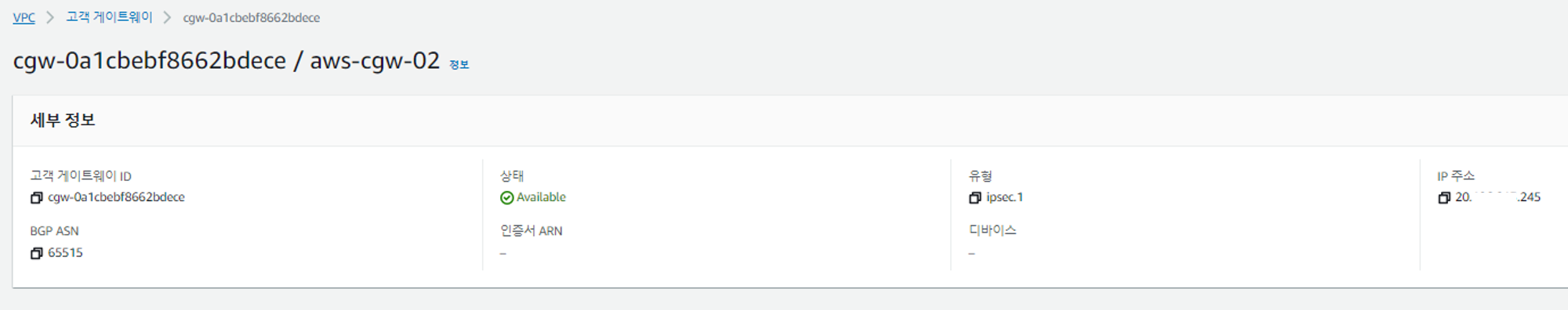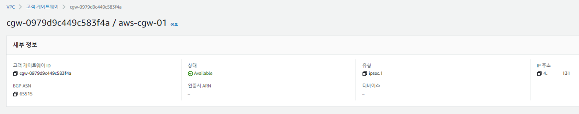 - 3-2. Azure 설정에서 2번까지 진행 후 AWS 고객 게이트웨이 생성