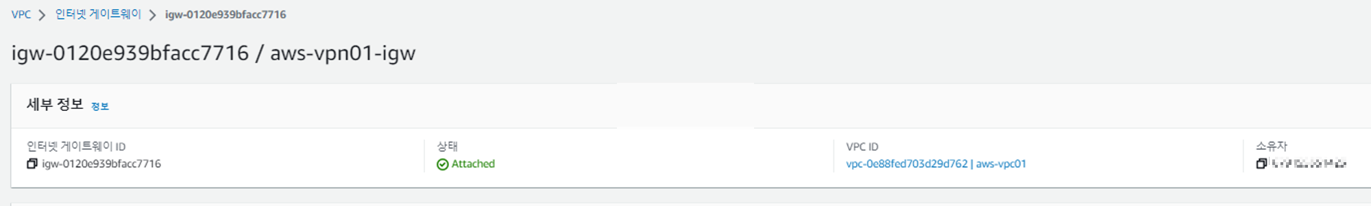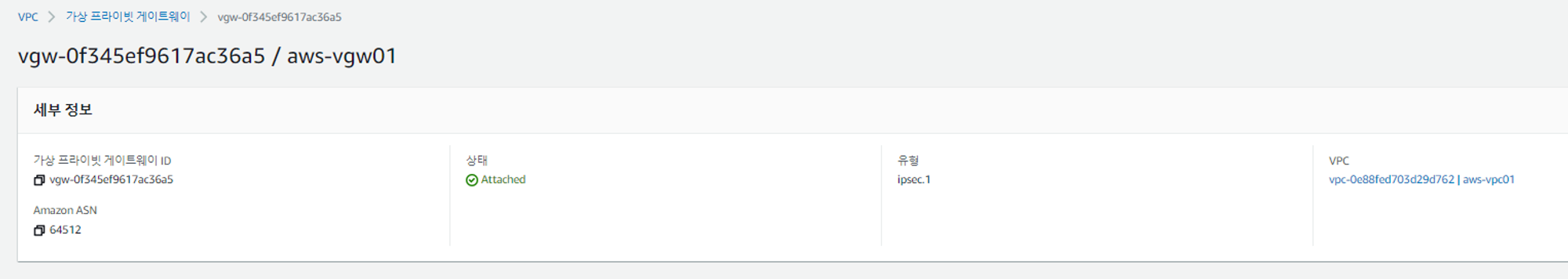 - 가상 프라이빗 게이트웨이 ↔고객 게이트웨이 1번 간의 연결 생성