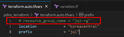 2) terraform.auto.tfvars에서 resource_group_name의 변수 값은 정의하지 않음