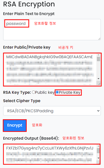 1) 비공개키의 소유자가 비공개 키를 이용해서 정보를 암호화한다.