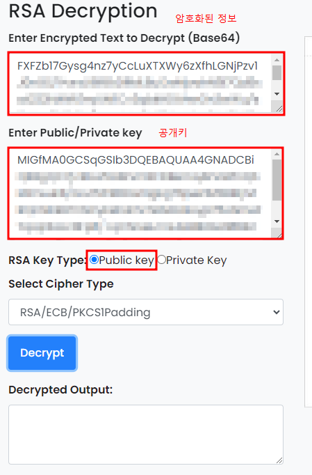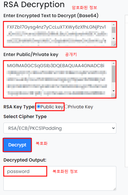 3) 수신자는 공개키로 암호화된 정보를 복호화한다.