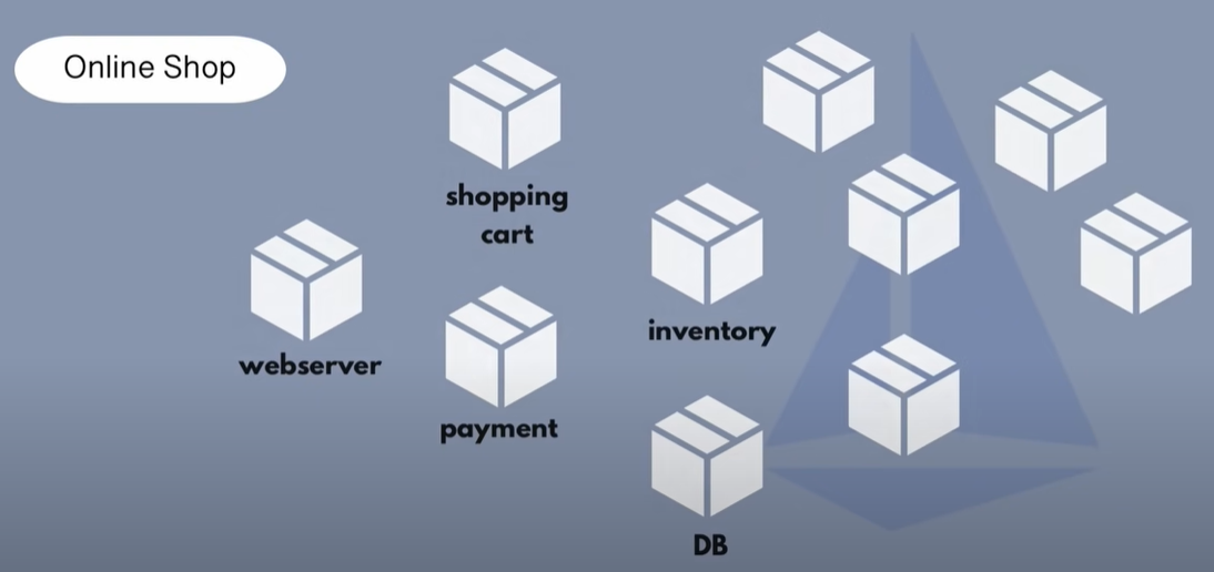 - 하기 이미지와 같이 온라인 구매 사이트를 만들 때 결제, 재고, 장바구니 페이지 등으로 서비스를 분할하여 구성한다.