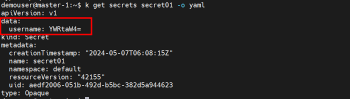 demouser@master-1:~/yaml$ kubectl get secret secret02 -o jsonpath='{.data}'