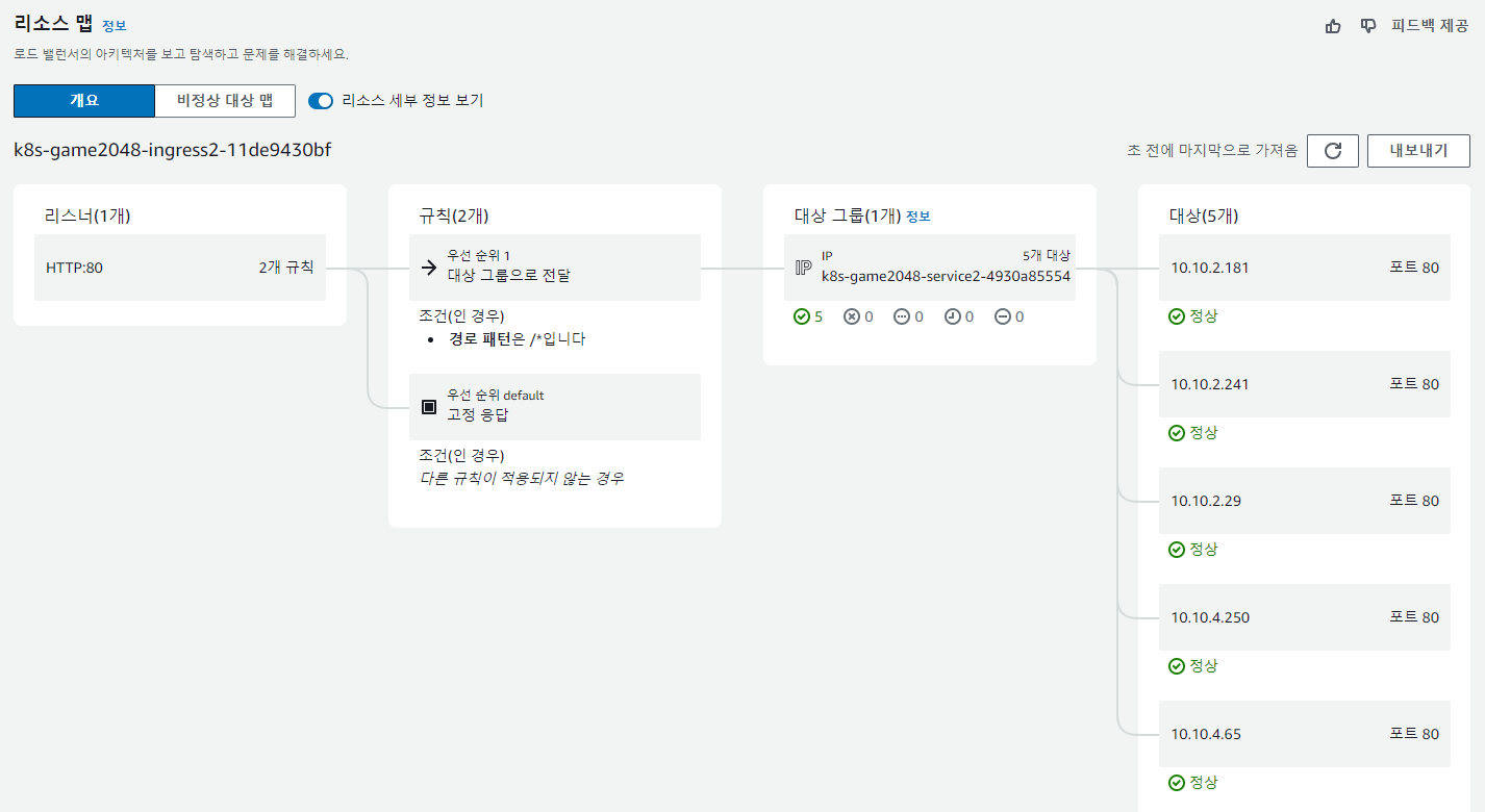 - Ingress 리소스에 대한 ALB가 생성된다.