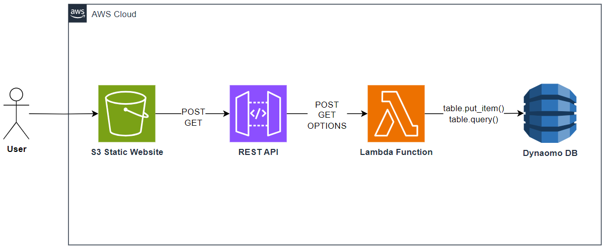 - User ⮕ S3 Static Website: 사용자는 브라우저에서 웹 애플리케이션을 열면, S3 버킷에 저장된 정적 웹사이트가 로드된다.