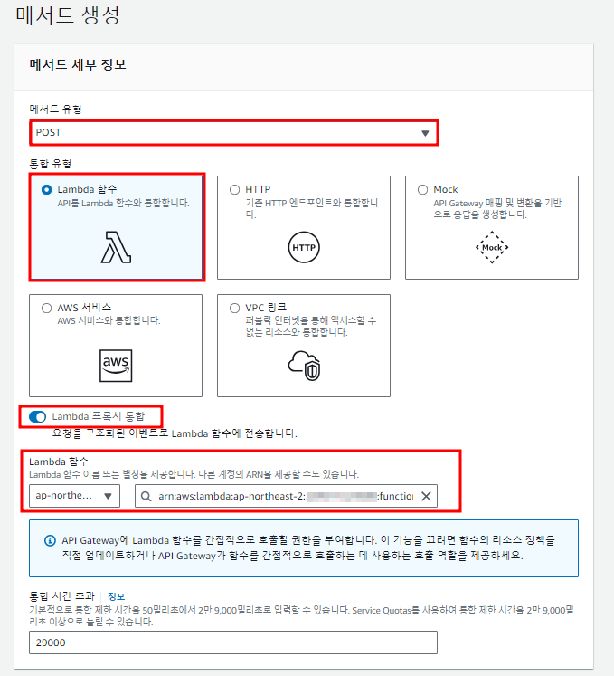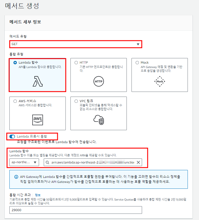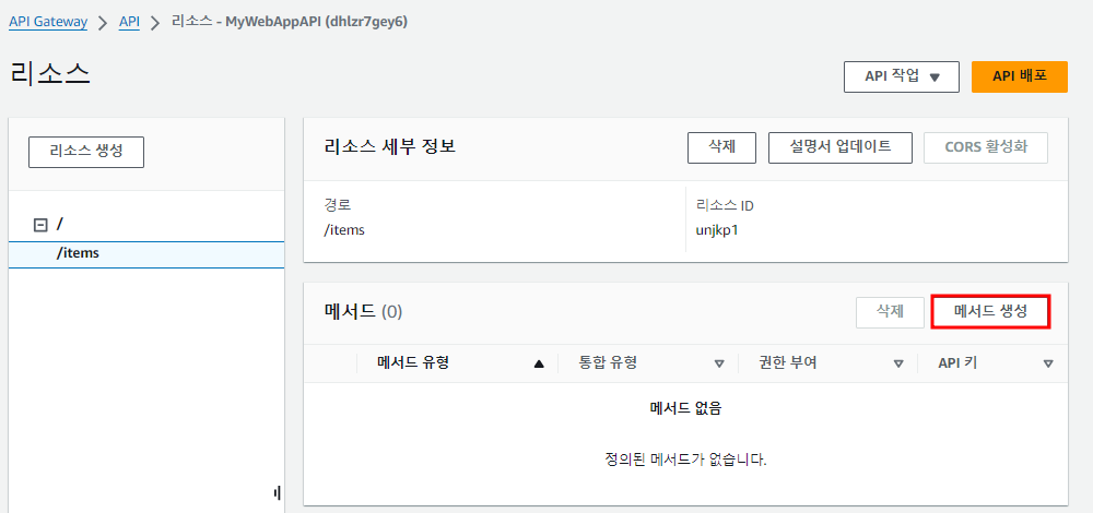 - GET, POST 요청을 Lambda 함수로 전달 하기 위해서 메서드를 생성한다.