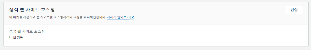 - 생성한 버킷으로 이동한 뒤 [속성] > [정적 웹 사이트 호스팅]을 클릭한다.